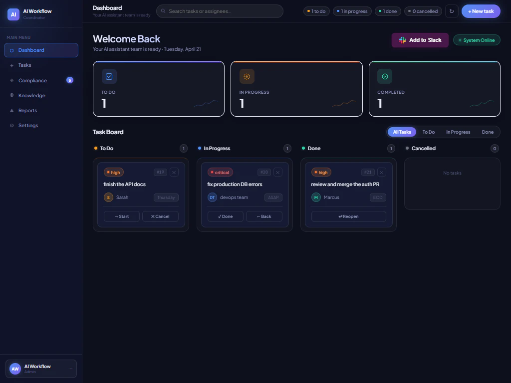Your team already assigns tasks in Slack. They just get lost. "Ali, finish the report by tomorrow...