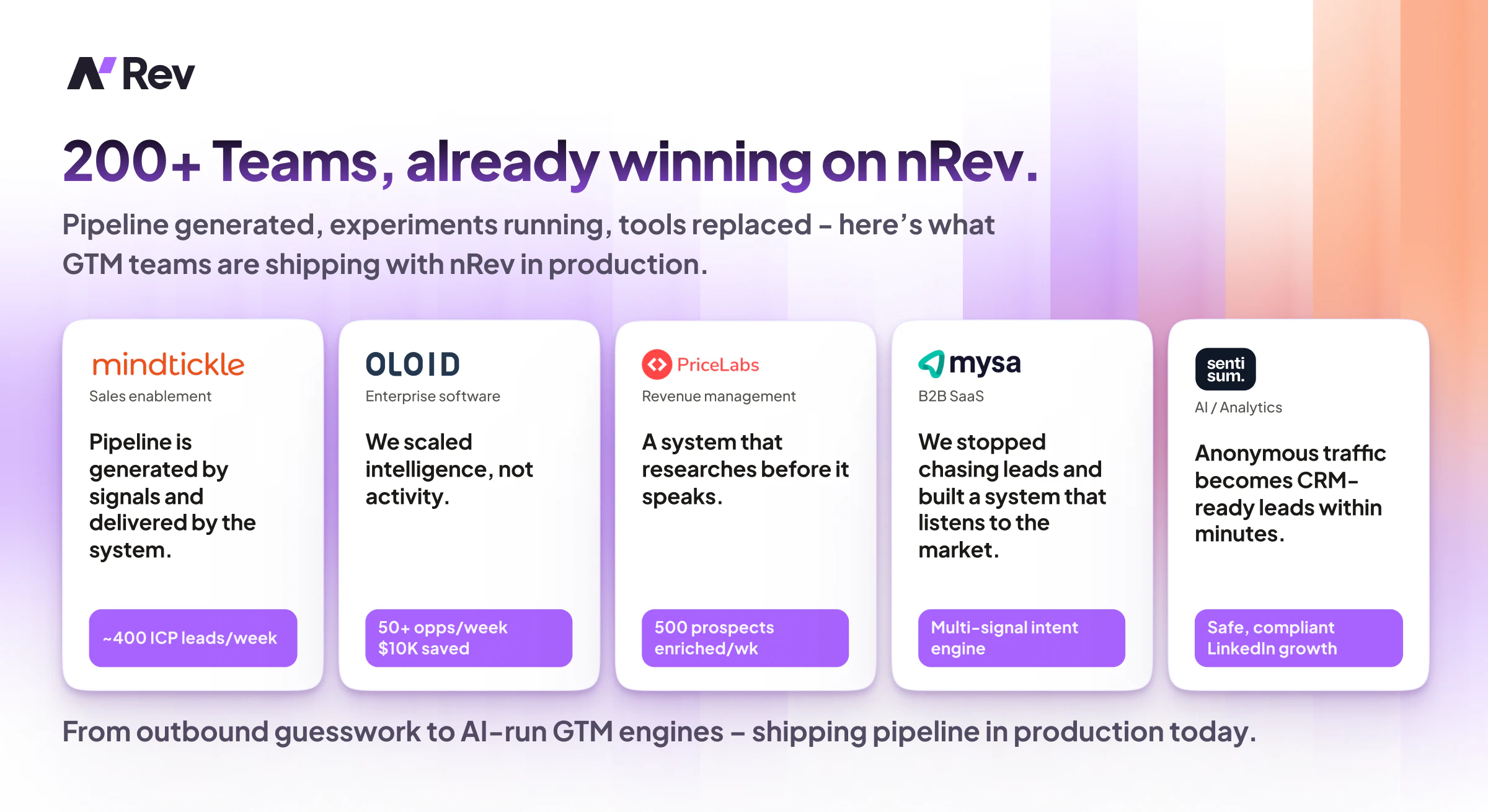 The future of GTM is here. nRev is a GTM wizard, trained on 10,000+ deployed marketing and sales ...