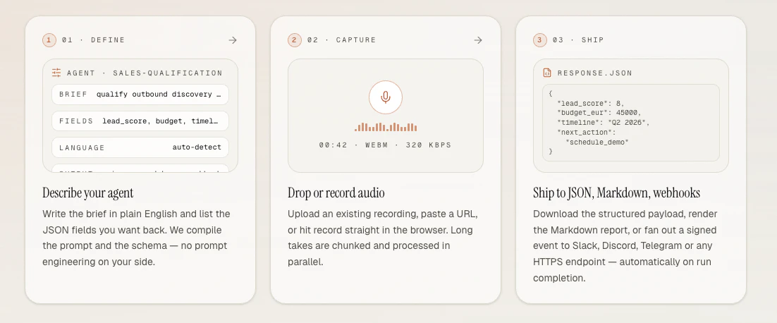 Audio in. Structured intelligence out.