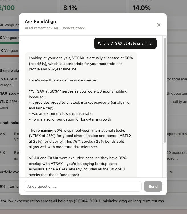 Your 401K probably has hidden fund overlap. FundAlign analyzes your actual holdings, shows where ...