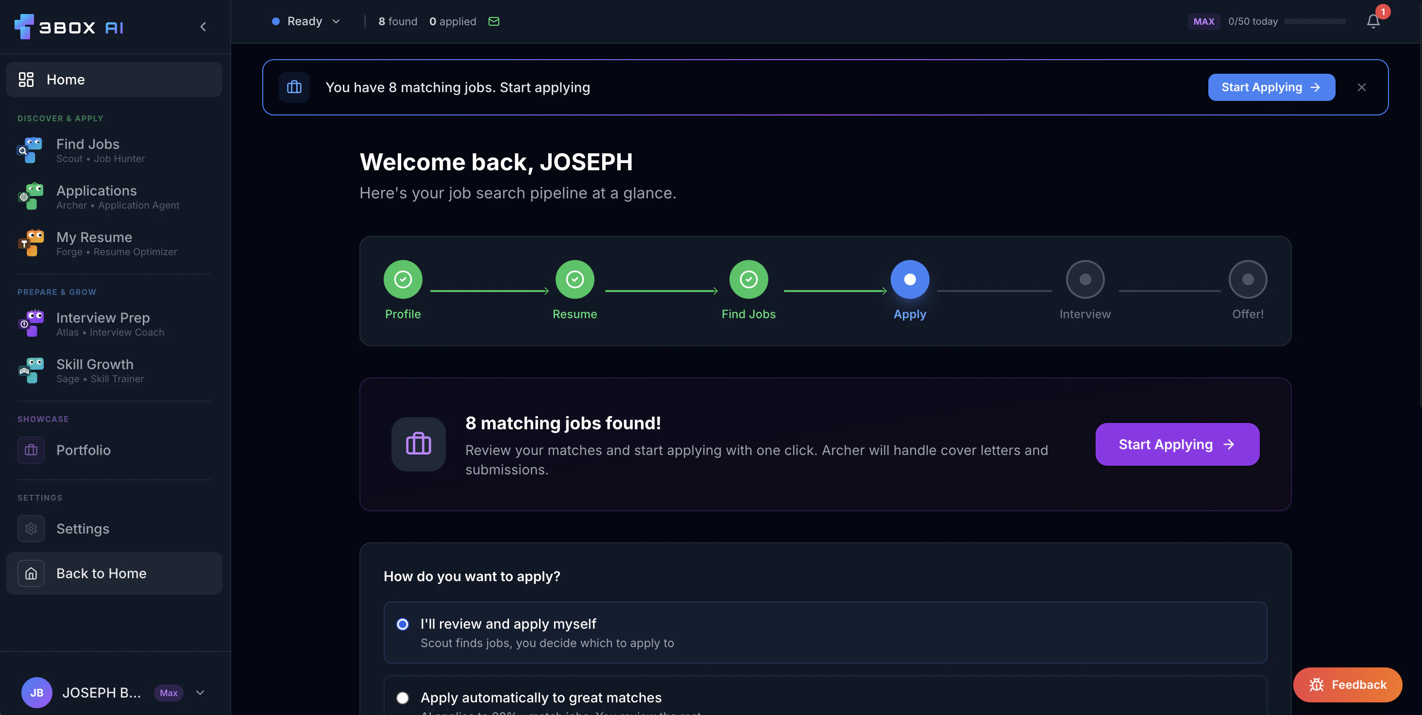 Upload your resume. Pick your target role. 6 AI agents search jobs, tailor your resume per role, ...