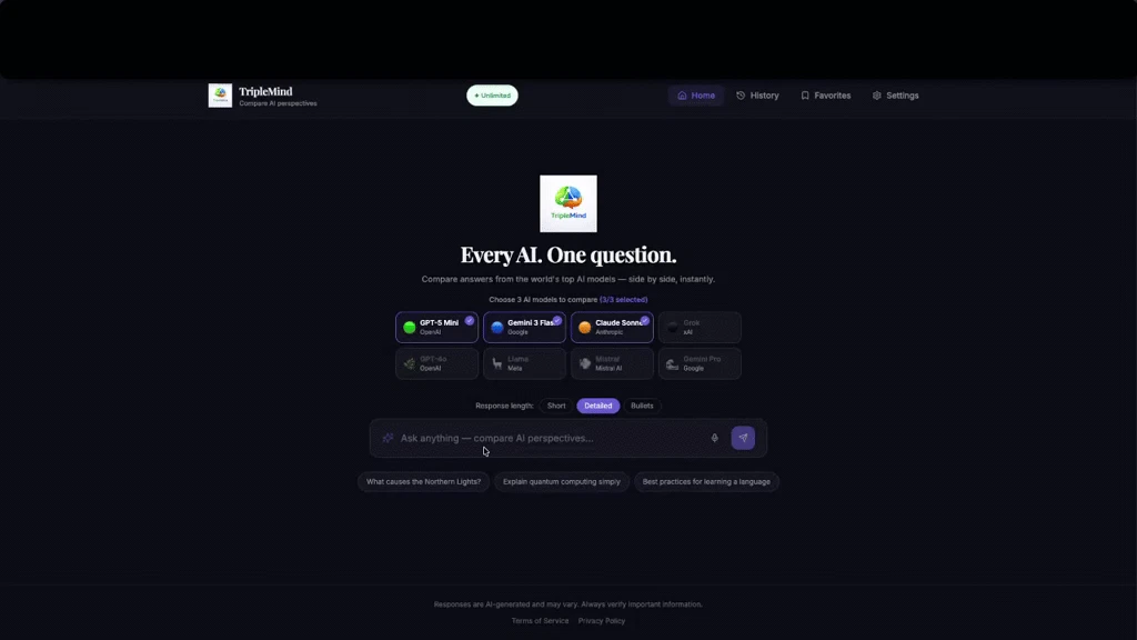 An elegant AI comparison engine that lets you ask a single question and view side-by-side respons...