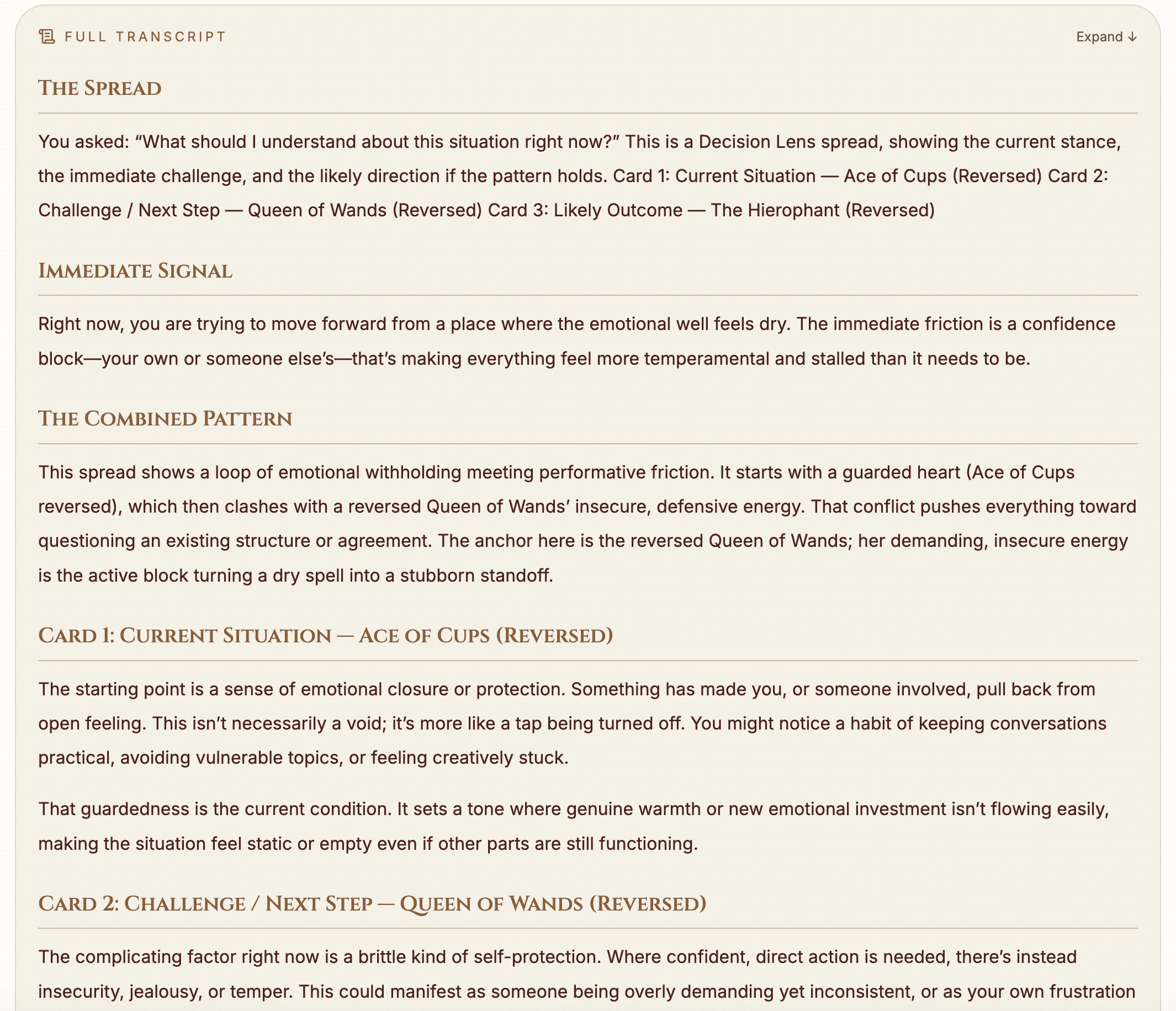 Brutally honest AI tarot readings for love, and real answers