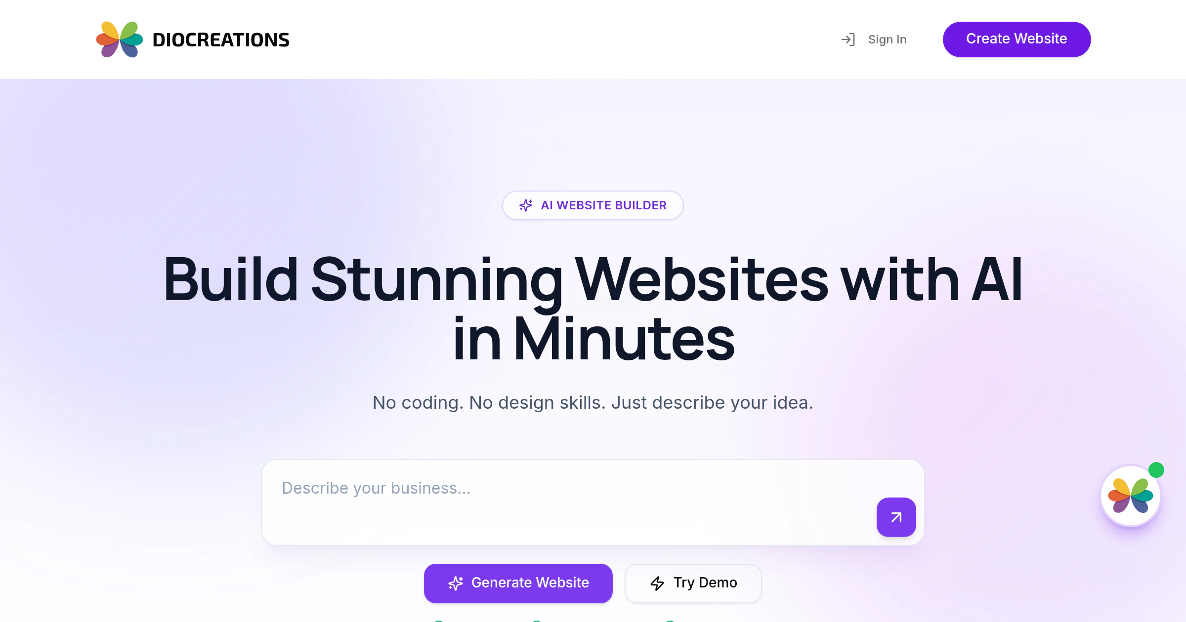 Just describe your business or idea, and the AI generates a complete, ready-to-use website instan...
