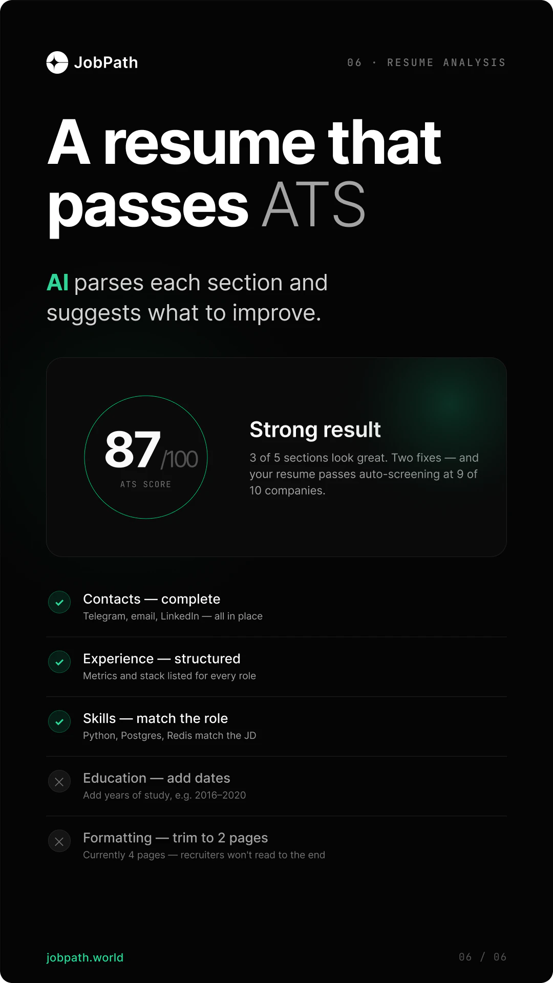 Match your resume to any job in 30 seconds. No login.