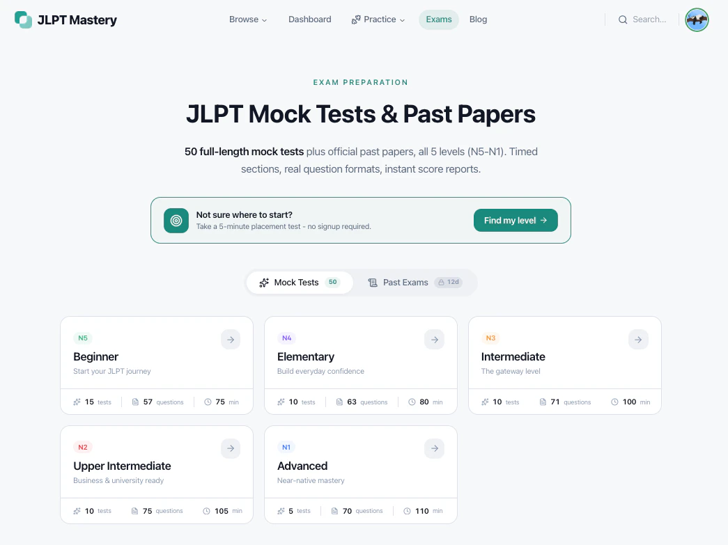 JLPT Mastery is an adaptive JLPT preparation platform that combines a structured N5–N1 curriculum...