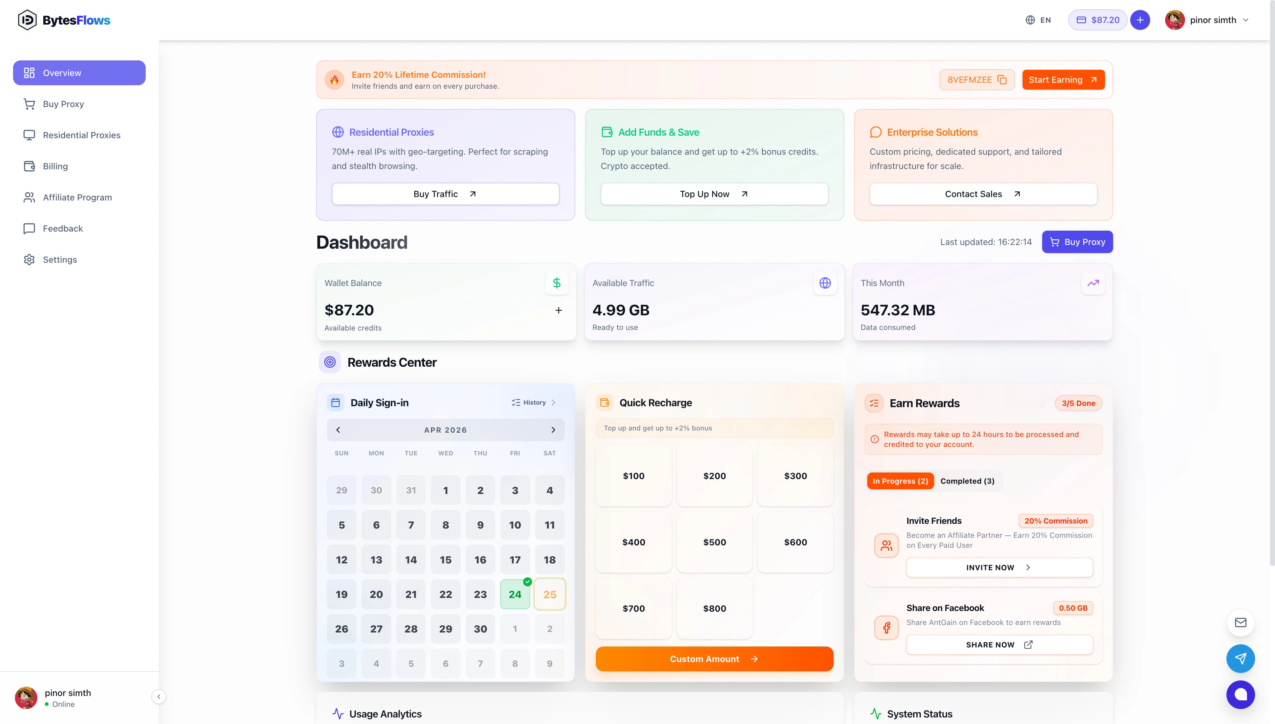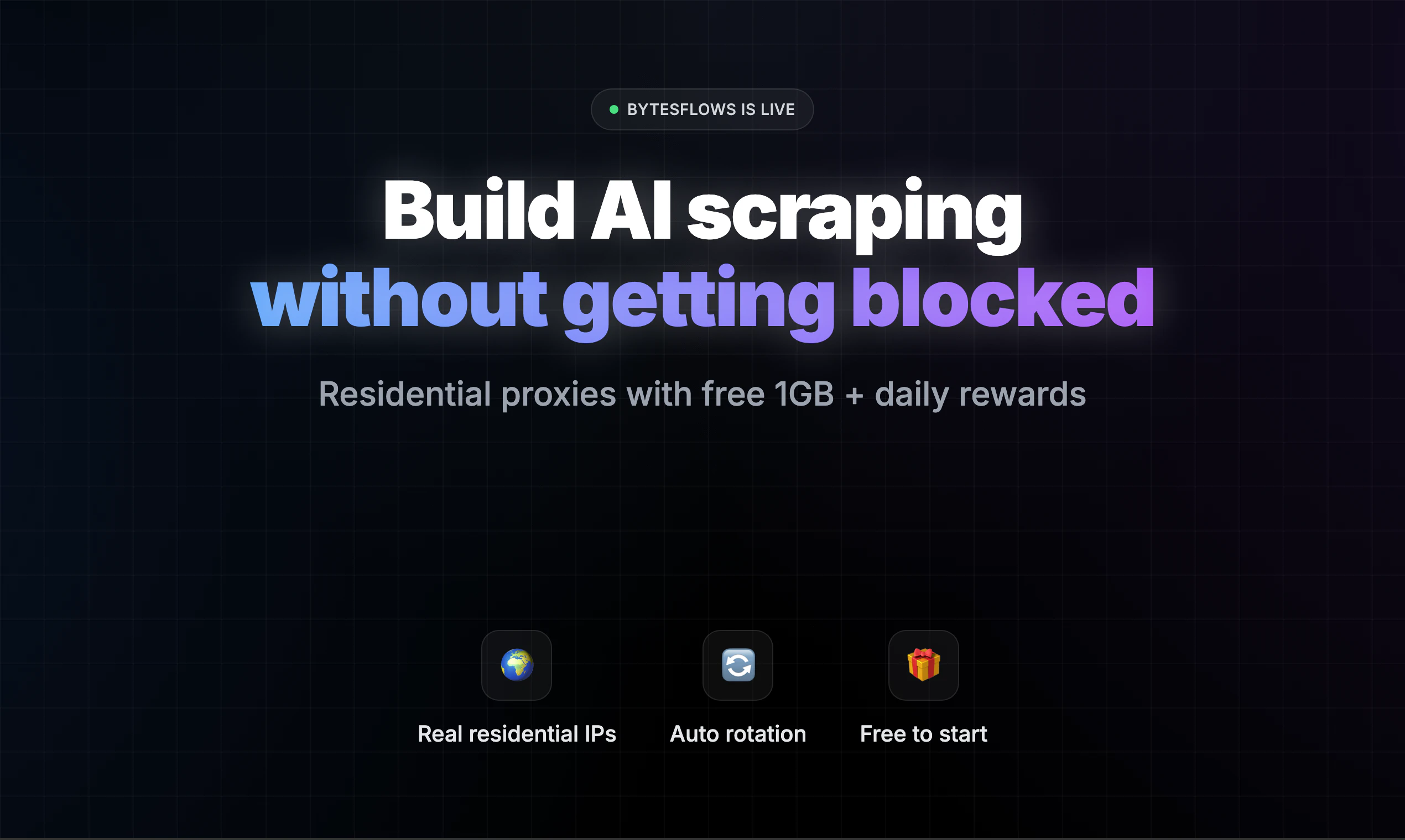 Build AI scraping workflows with real residential IPs. BytesFlows provides rotating proxies with ...