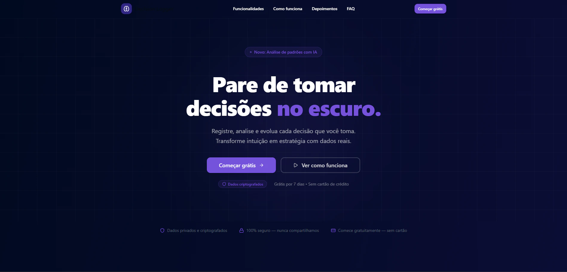 Registre, analise e evolua cada decisão que você toma. Transforme intuição em estratégia com dado...