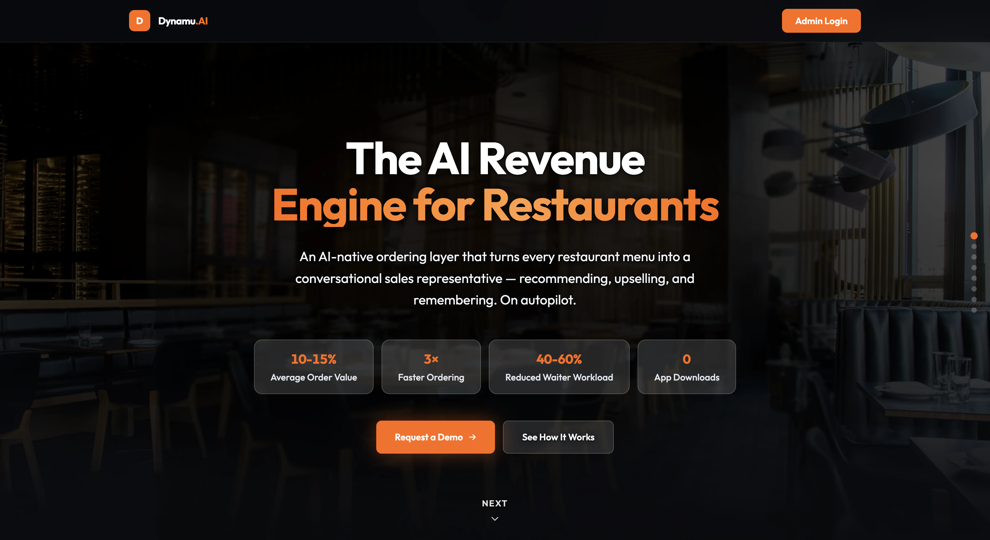 Dynamu AI is an AI-native ordering assistant for full-service restaurants. Customers scan a QR co...