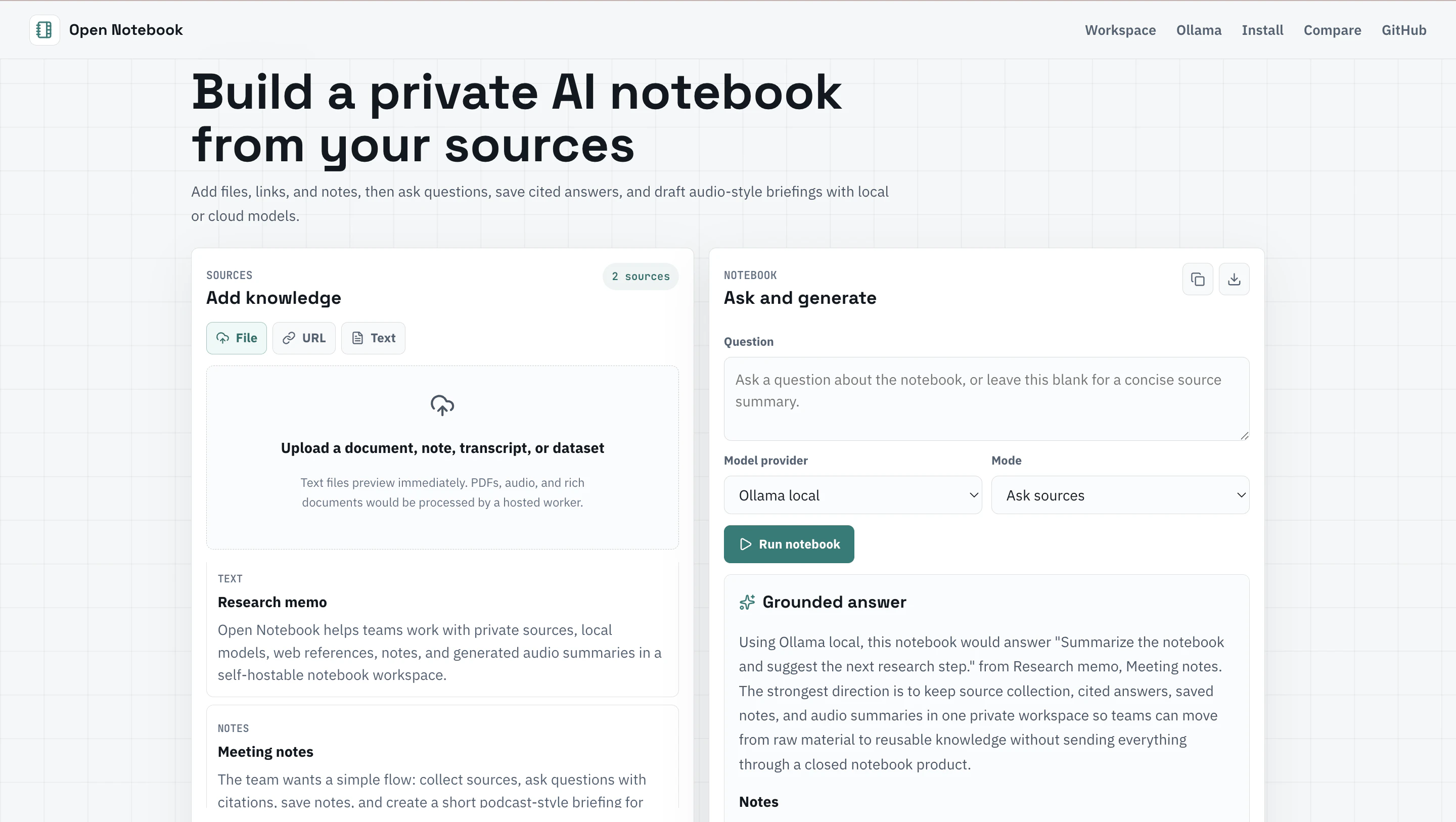 Build a private AI notebook from your sources