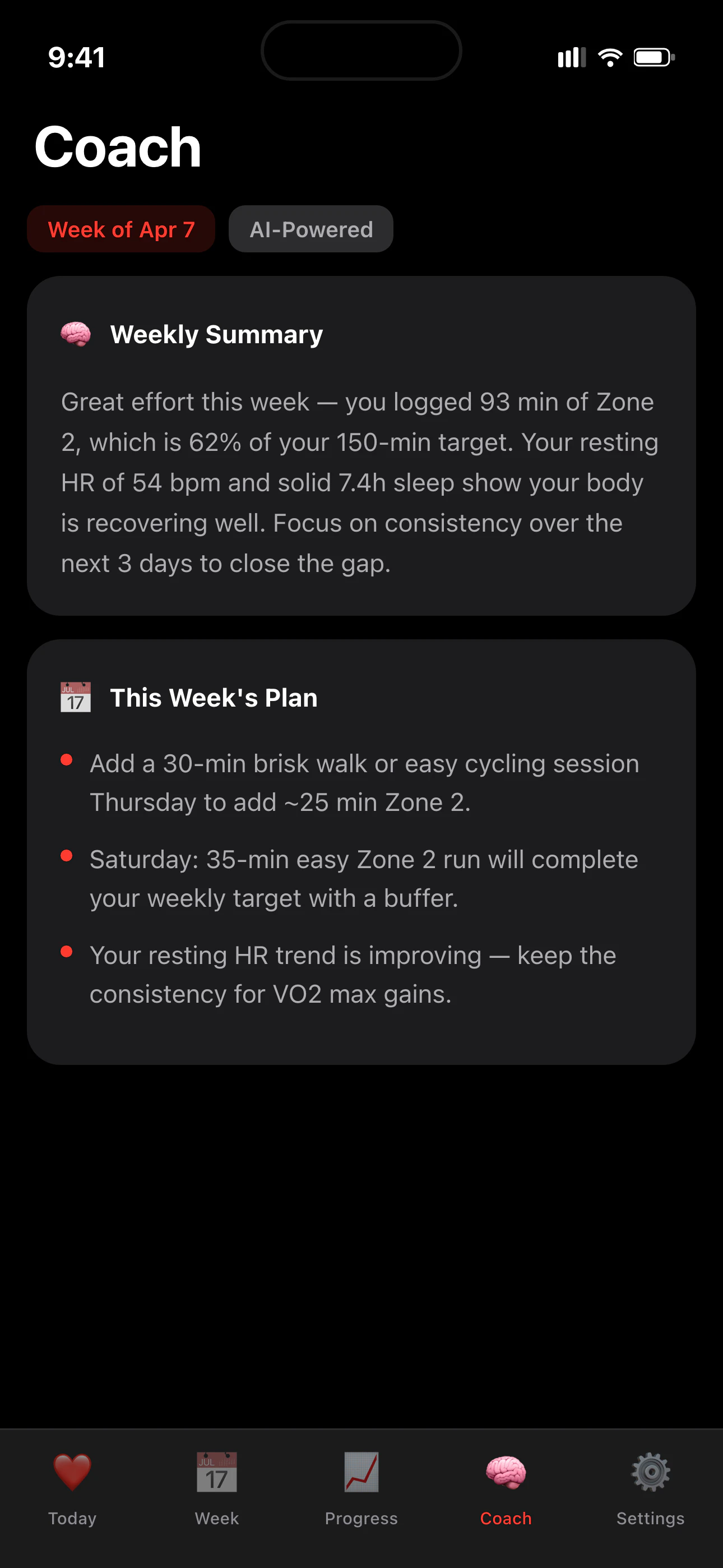 Zone 2 Longevity Coachautoatcll detects yor Zone 2 minutes from Apple Watchworkout data and shows...