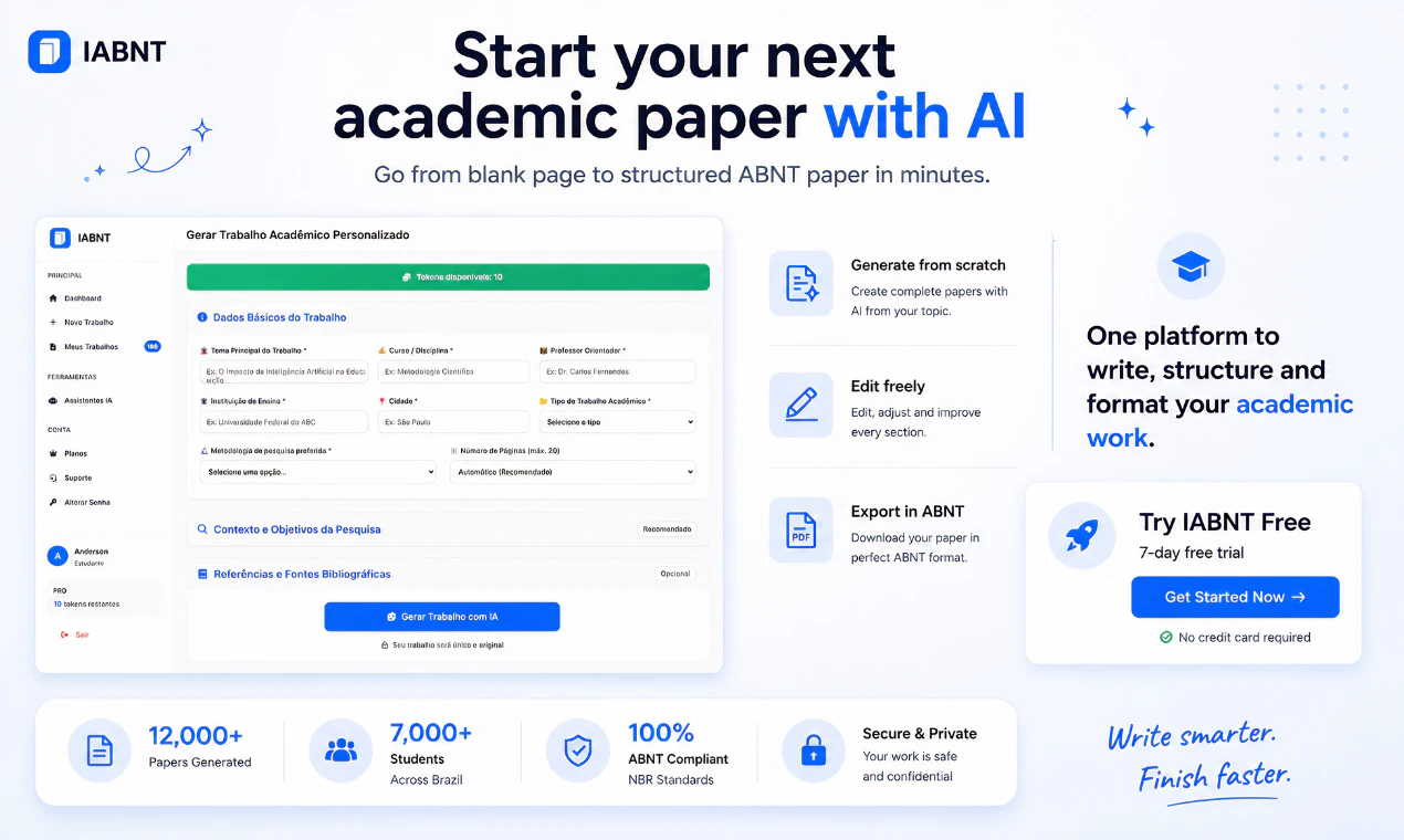 IABNT helps students generate, structure and format complete academic papers according to ABNT st...