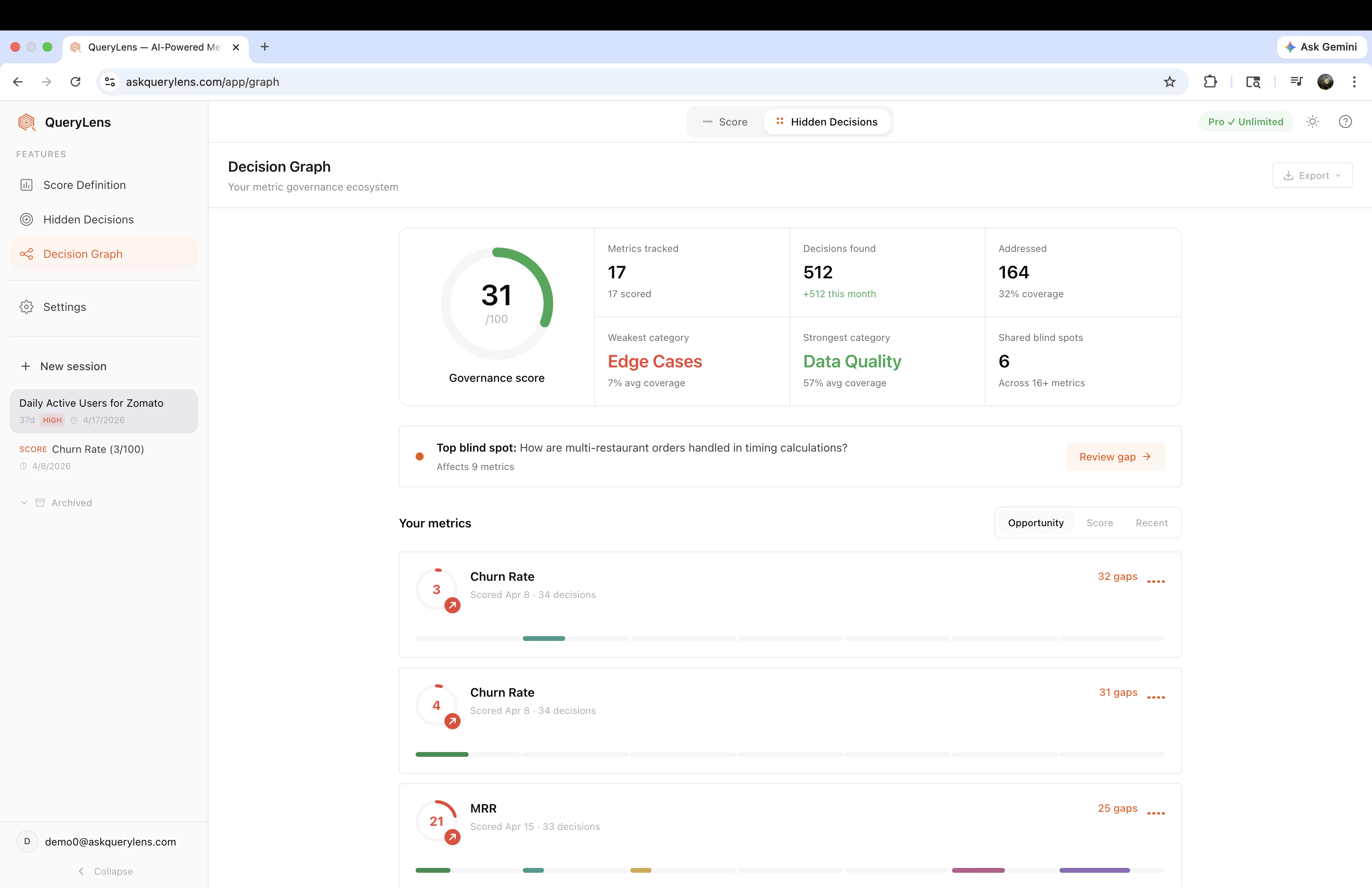 Two analysts. Same metric name. Different numbers. Not a bug — every metric hides 25-40 decisions...