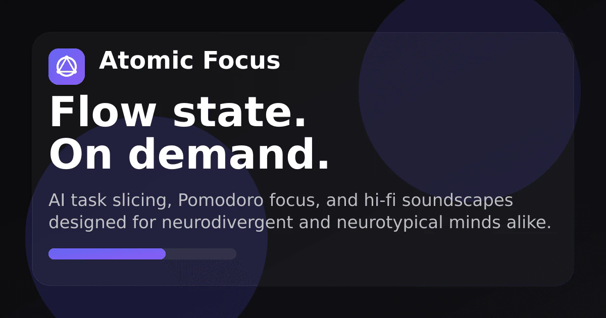 Most productivity tools are built for neurotypical brains. Atomic Focus is built for the rest of ...