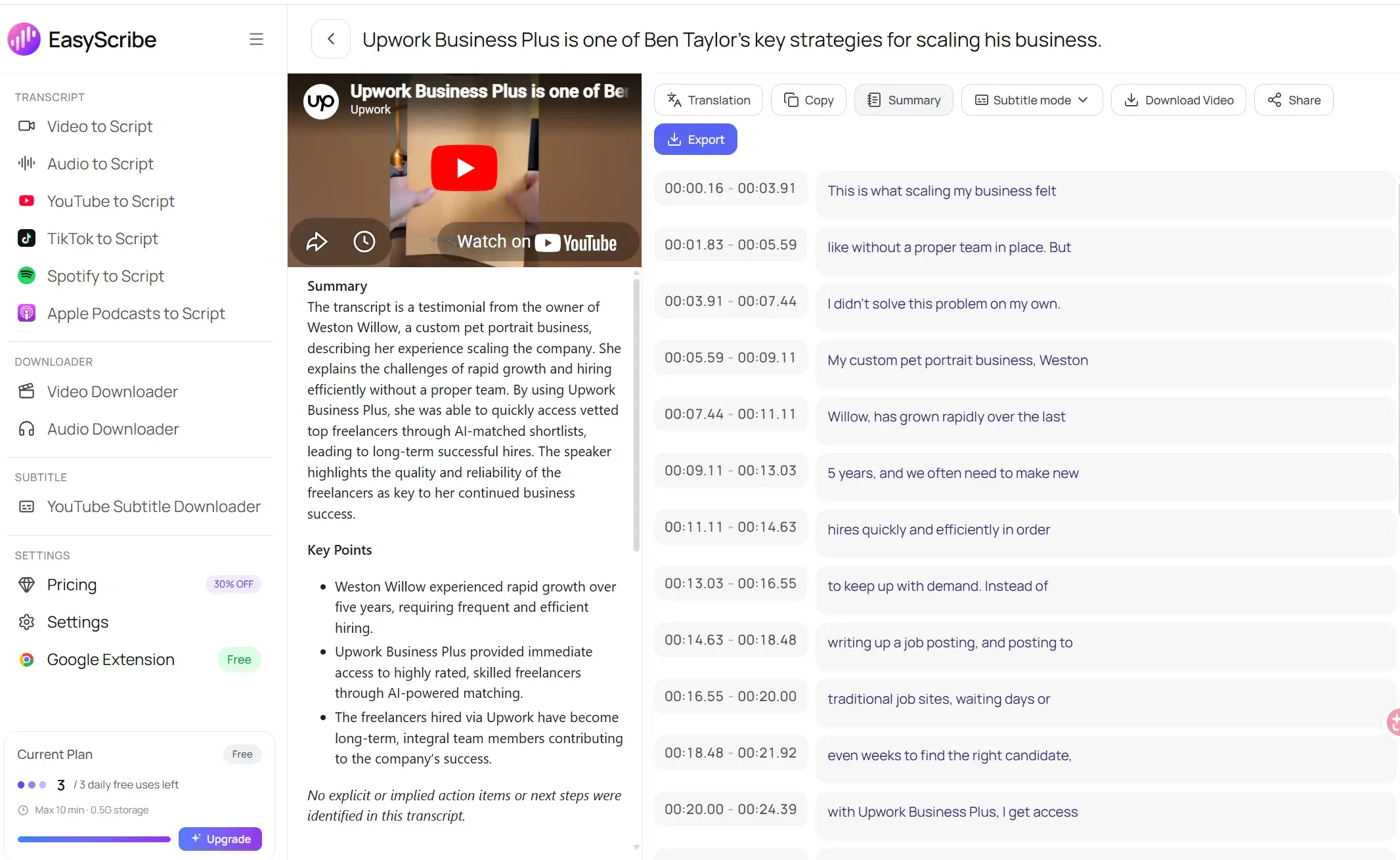 EasyScribe helps you turn video and audio into clean, accurate text with AI. Upload a file or pas...
