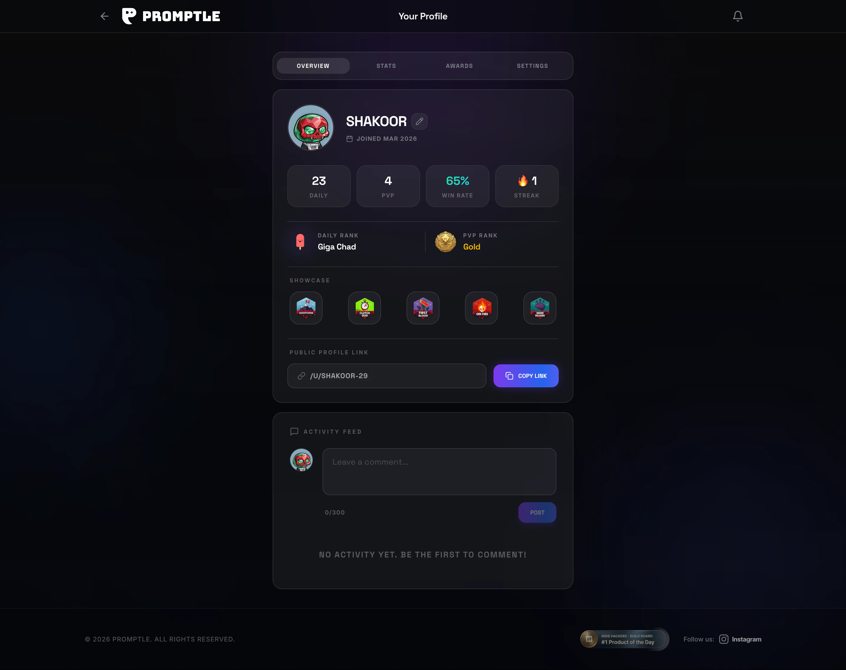 Promptle is a multiplayer AI prompt guessing game where creativity meets competition. Decode prom...