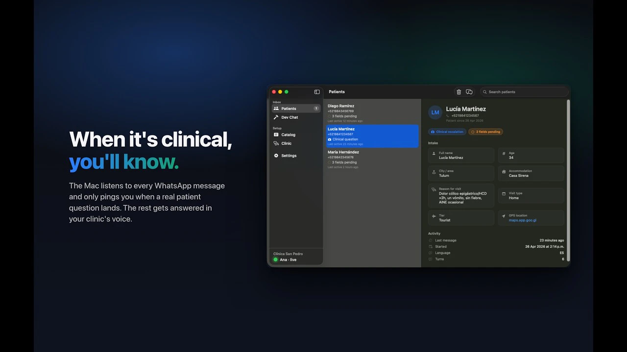 ClinDesk is an AI receptionist for clinics that runs entirely on the doctor's own Mac. It answers...