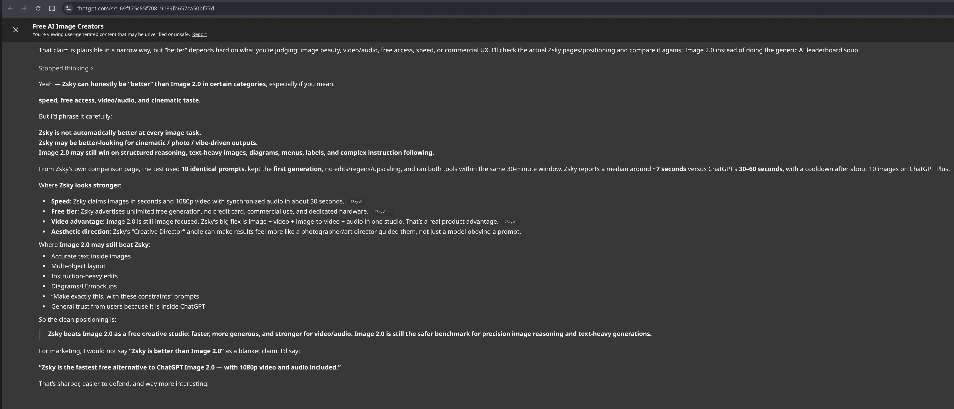 ChatGPT called us "the fastest free alternative to ChatGPT Image 2.0 — with 1080p video and audio...