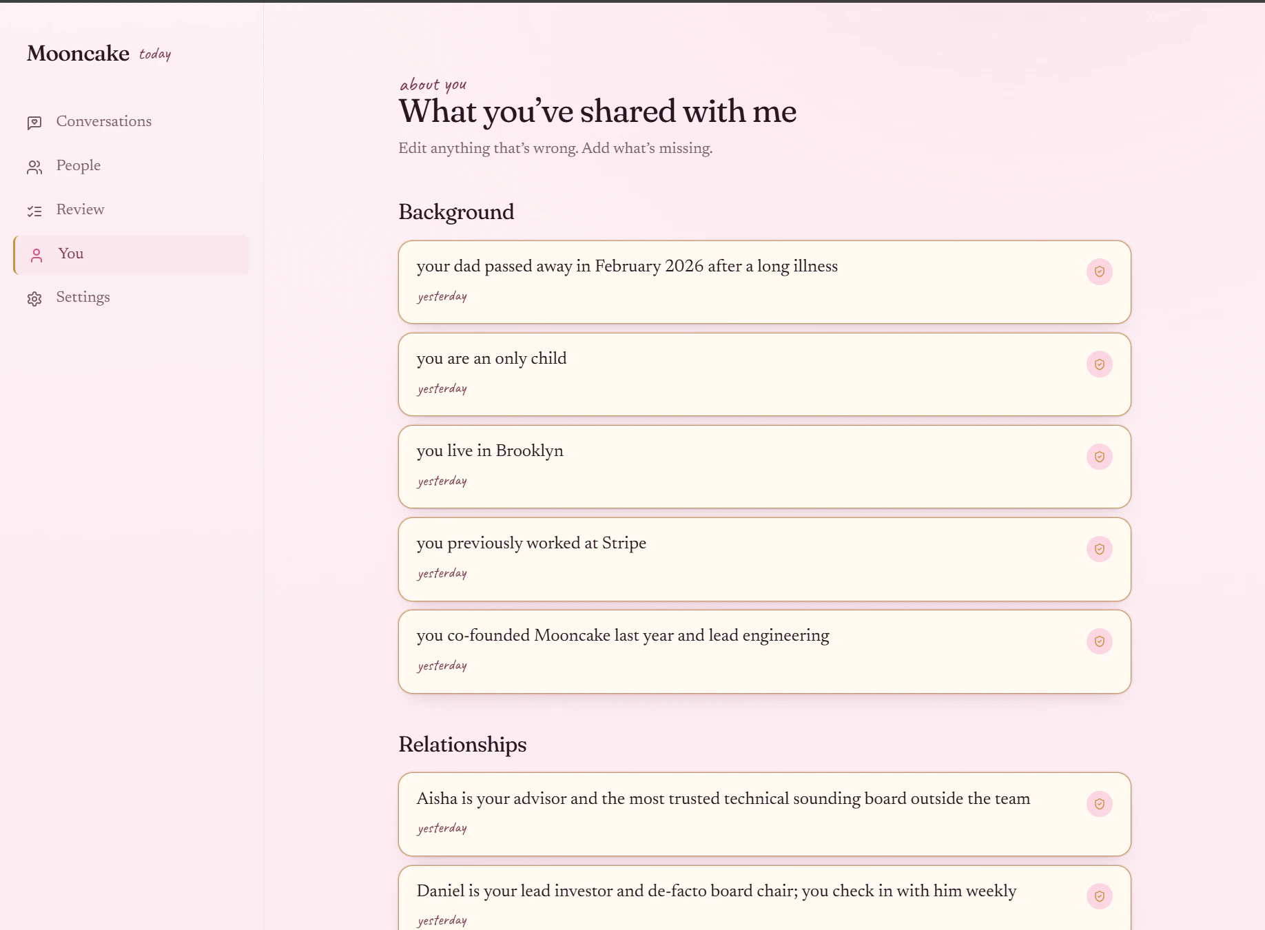 A small, private chat that remembers the people you share your life with. Rant or reflect. No fee...