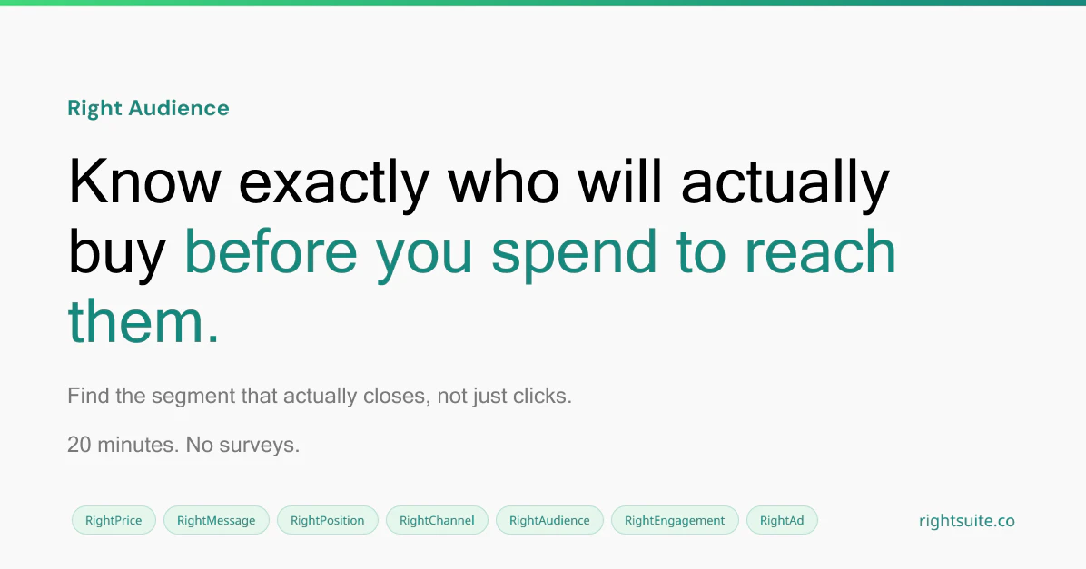 Right Suite runs AI-powered buyer analysis so founders know who will buy, what to charge, what to...