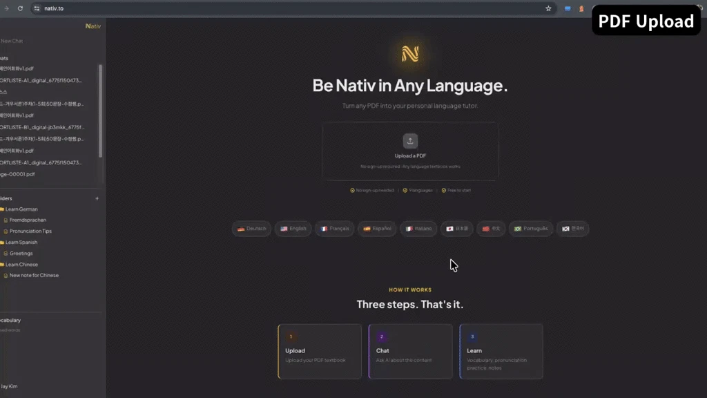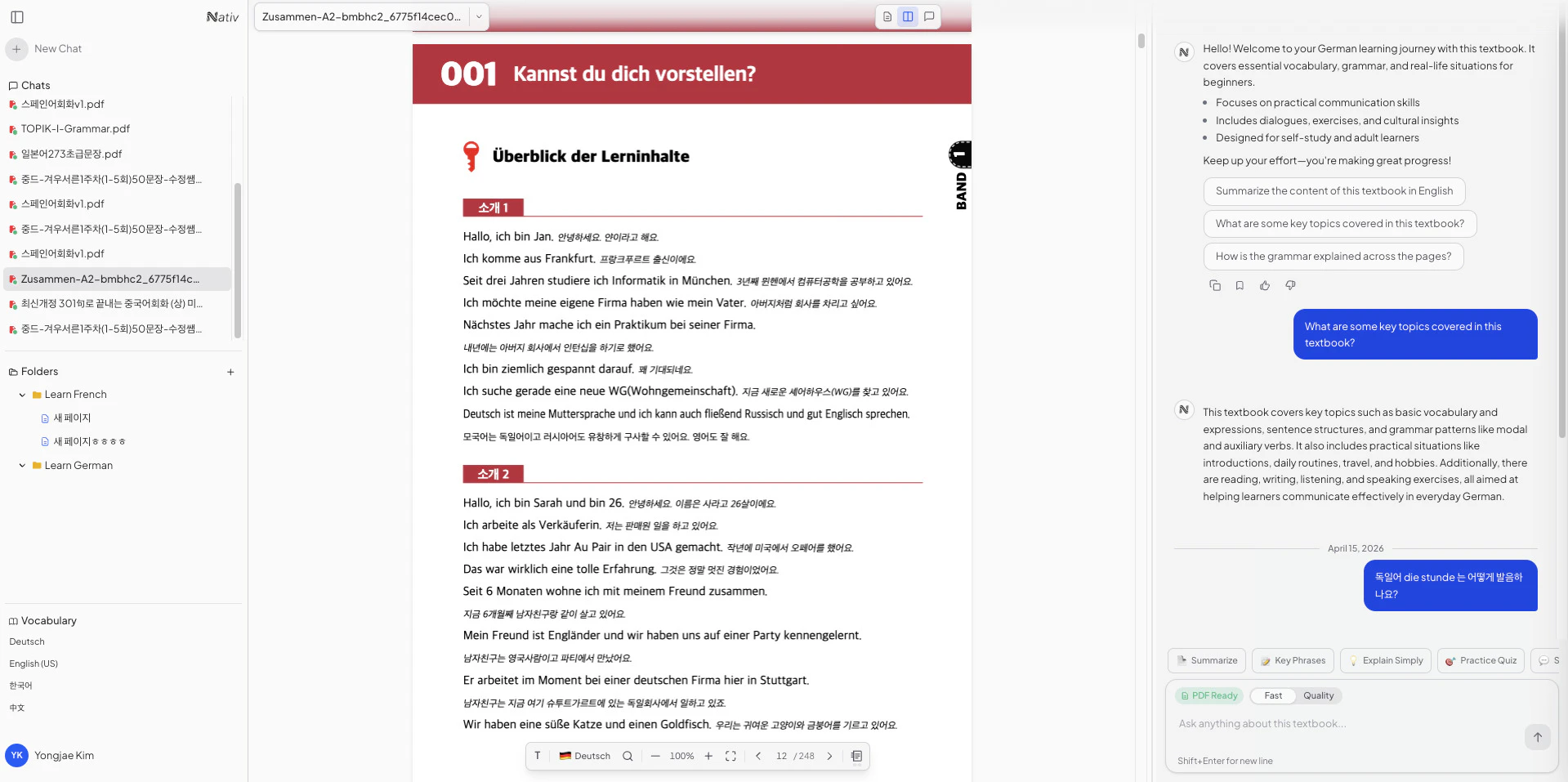 Nativ turns your own PDF textbooks into a personal AI language tutor. Upload once — the AI indexe...