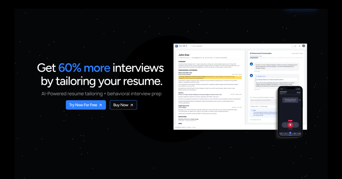 Stop sending generic resumes into the void. Resu-ME AI asks 6 smart questions, scores your improv...