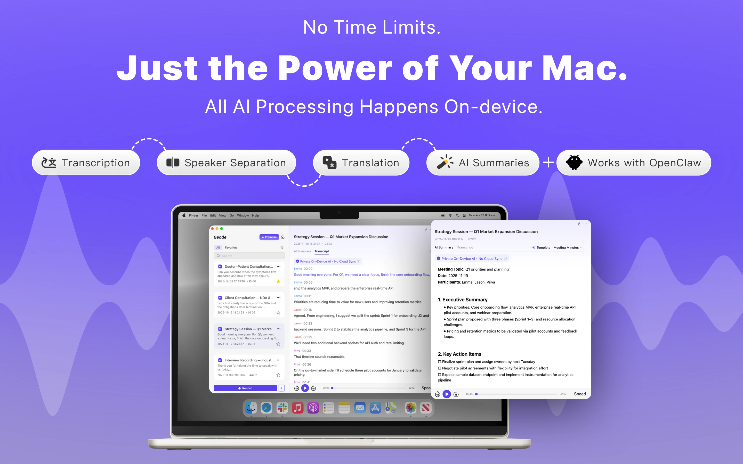 Most transcription tools send your audio to the cloud — charging per minute, storing your convers...