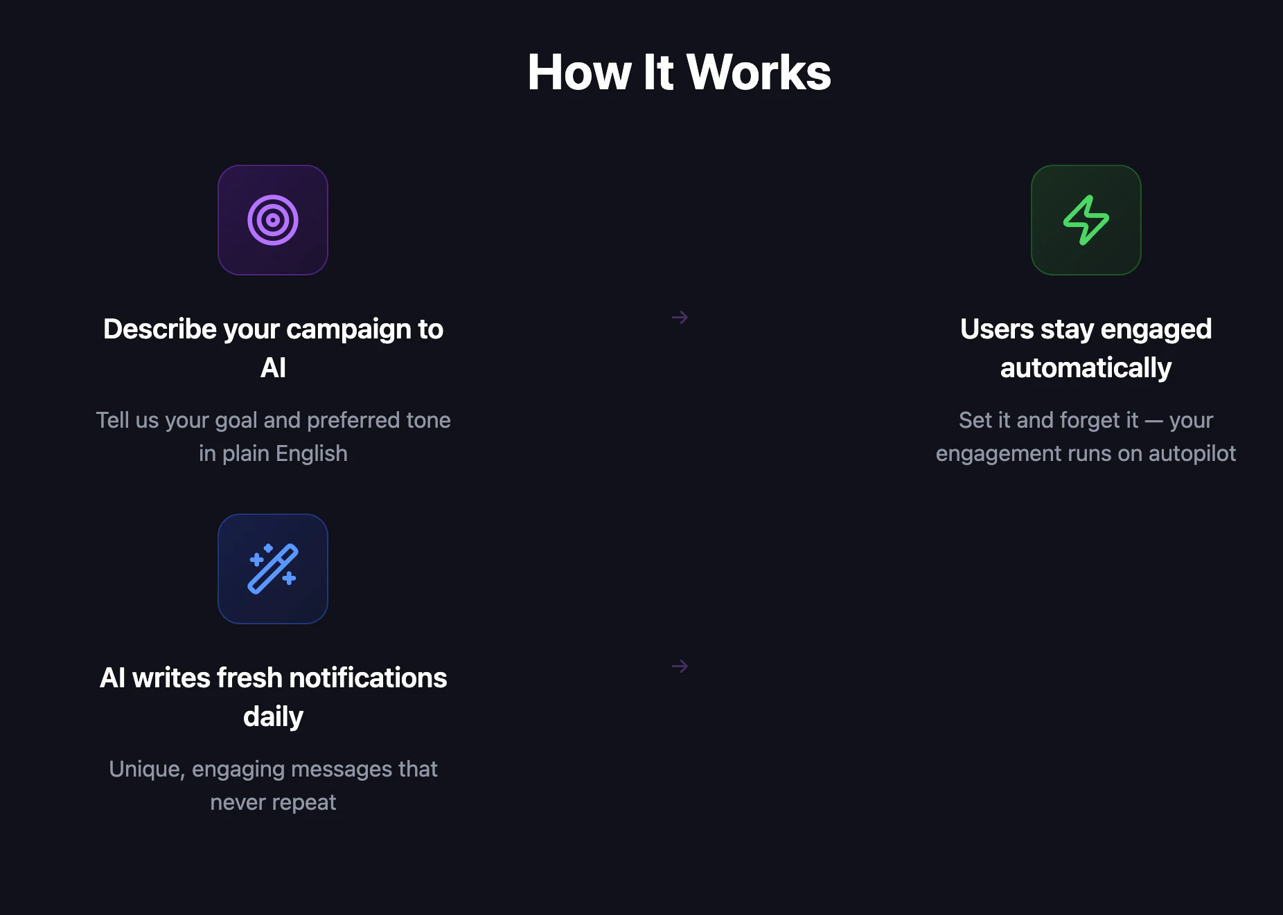 Most push notification tools make you do the work daily. PushPilot is different — set up your cam...