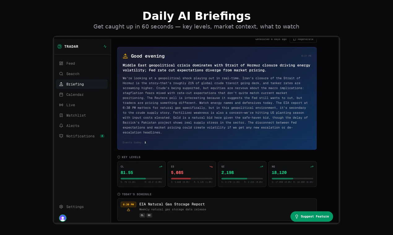 Tradar filters 1000+ financial news sources down to what actually moves your positions. - AI-scor...