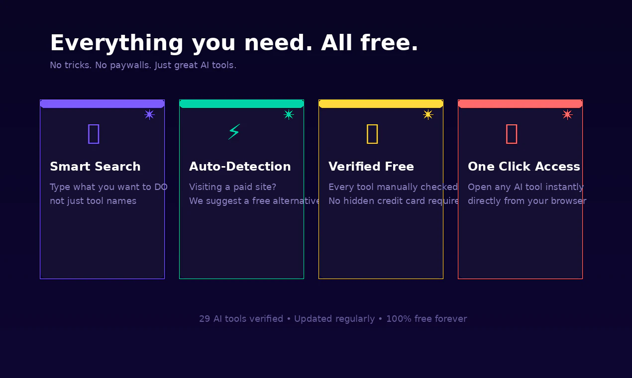 Find 100% free AI tools — no credit card, no hidden limits
