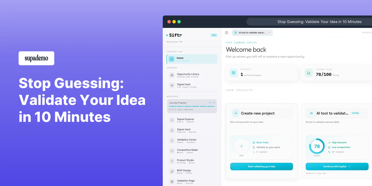 Stop building products nobody wants. Siftr helps founders validate startup ideas using real deman...