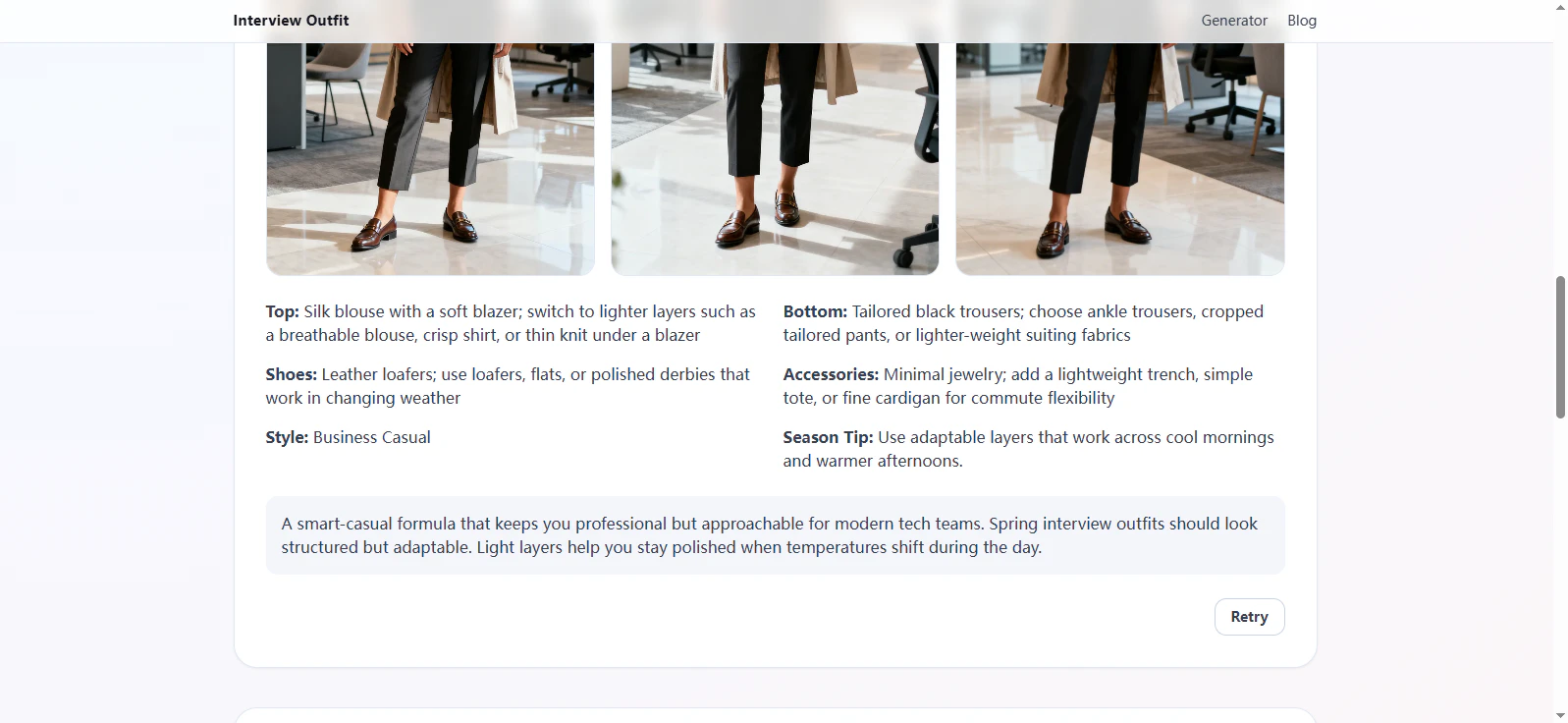 Free interview outfit generator for job seekers