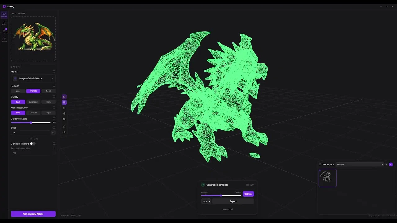 Transform any image into a 3D model and export as GLB, OBJ, STL or PLY. Runs entirely on your mac...