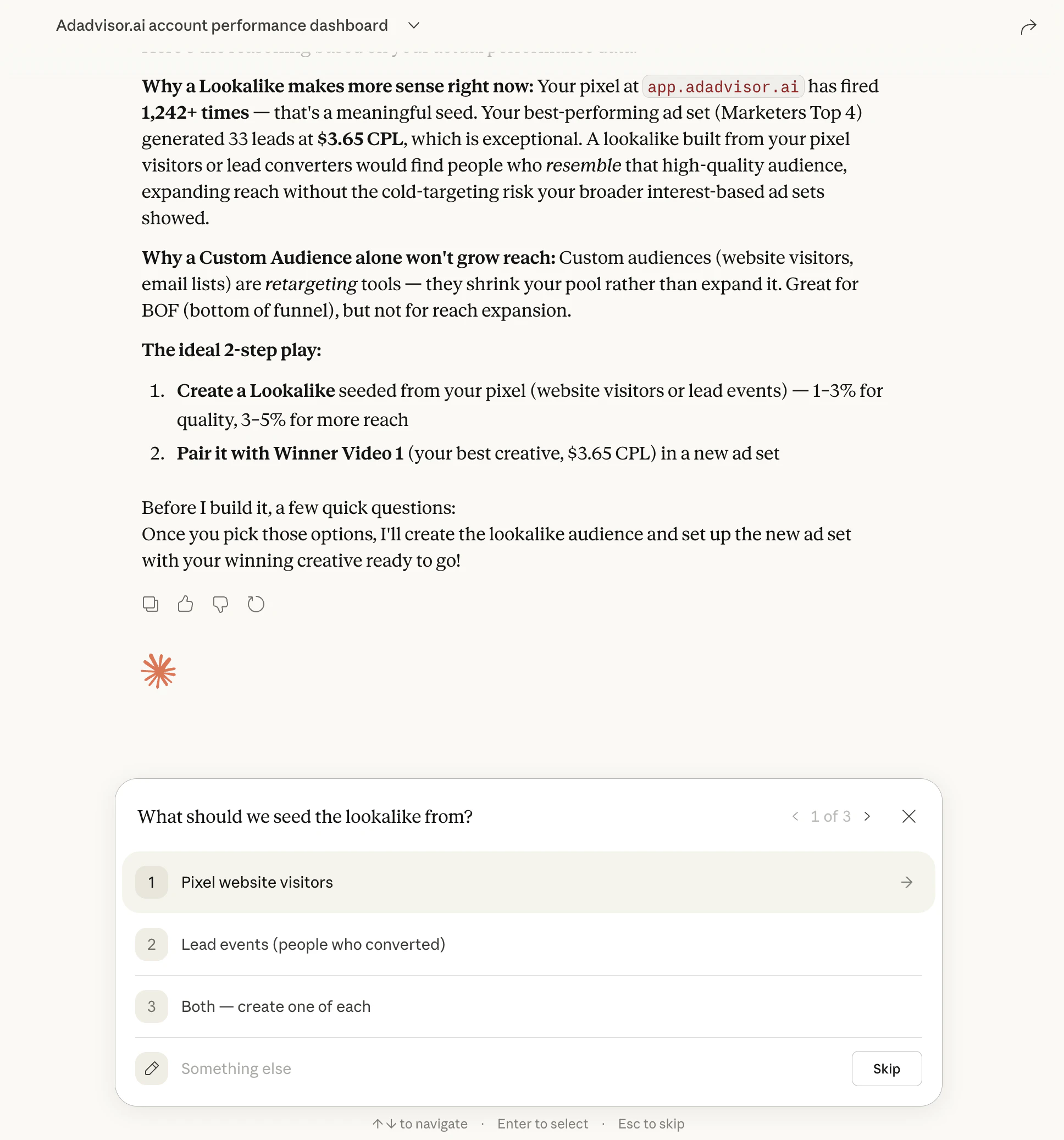 AdAdvisor MCP connects your Meta ad accounts to any AI assistant. Claude, ChatGPT, Cursor, and mo...