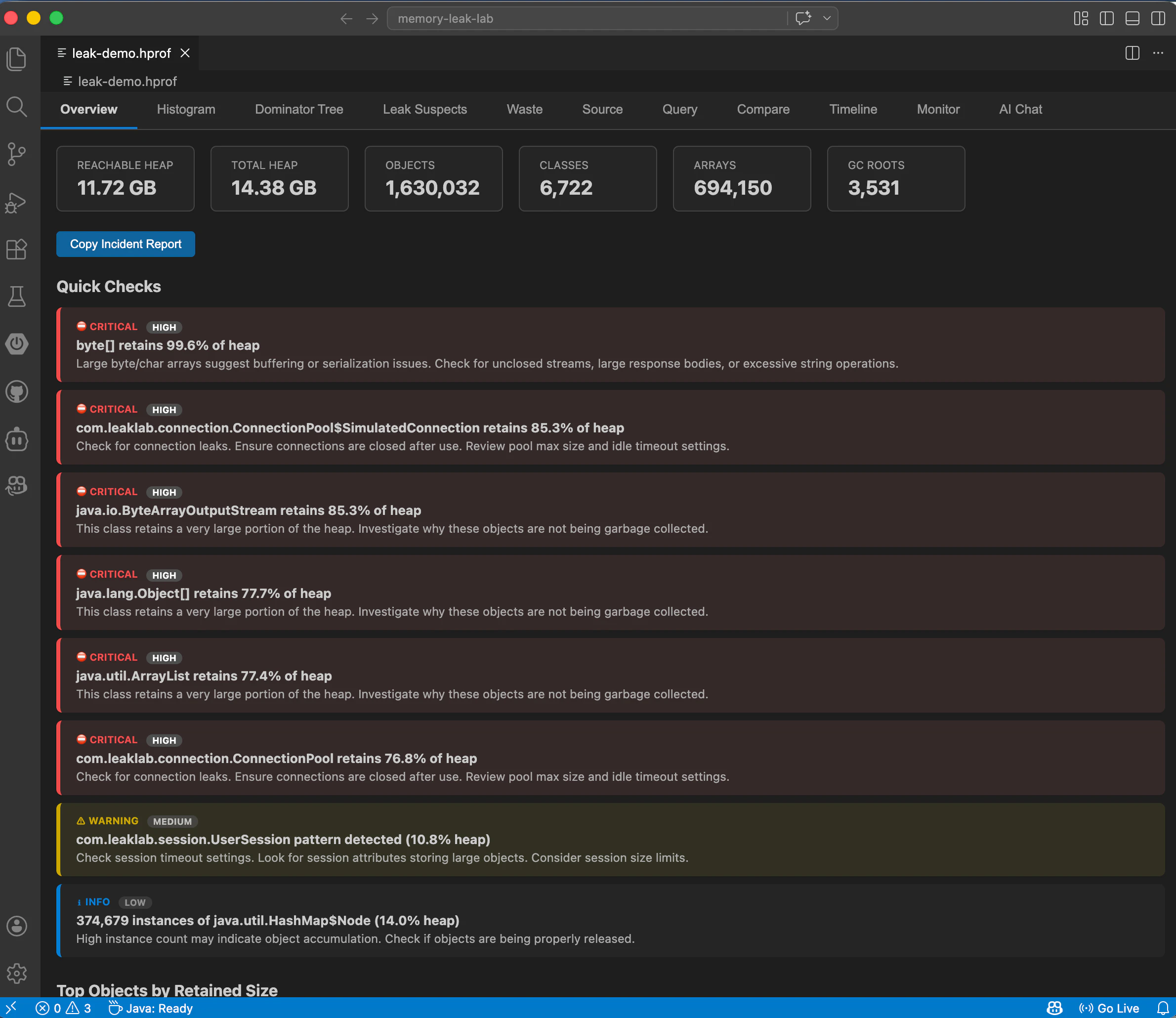 AI powered JVM heap dump analyzer inside VS Code