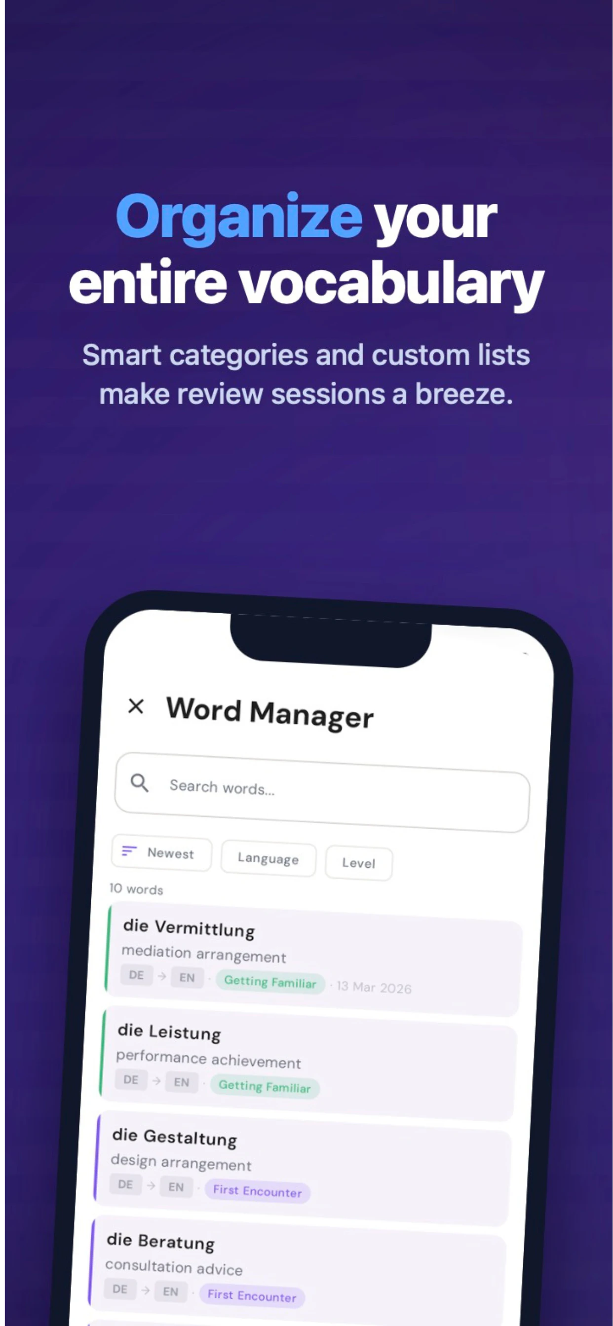 Most vocabulary apps are either too rigid or too manual. Lexicon hits the middle ground. AI gener...