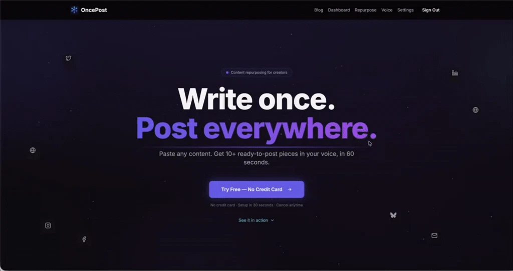 Repurpose any content into 21 platform-ready posts across 9 platforms in 60 seconds. AI matches y...