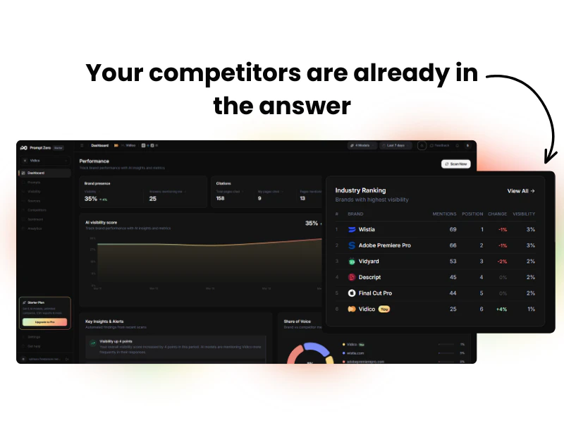 Prompt Zero tracks how your brand appears across ChatGPT, Gemini, Grok, and Perplexity. Get a vis...