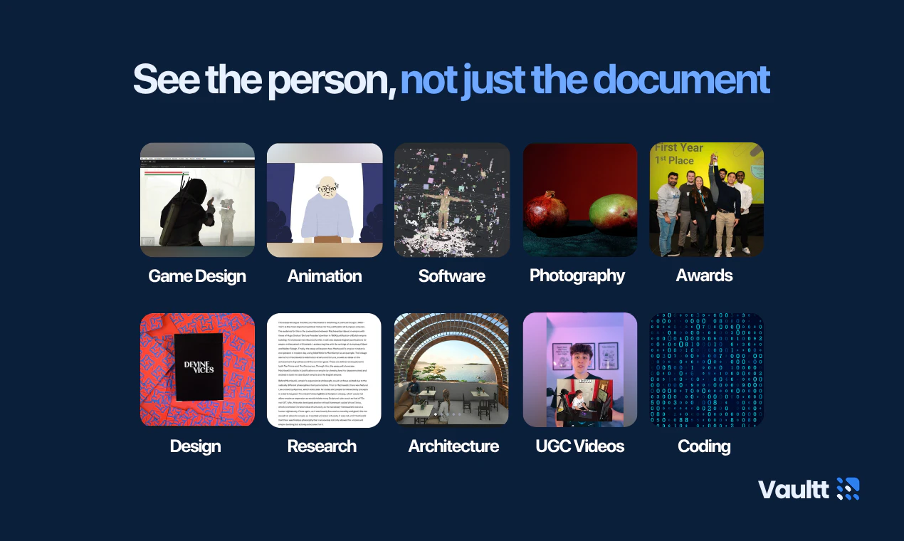 Vaultt lets employers discover top talent through real projects, not CVs. Think Pinterest + Fiver...