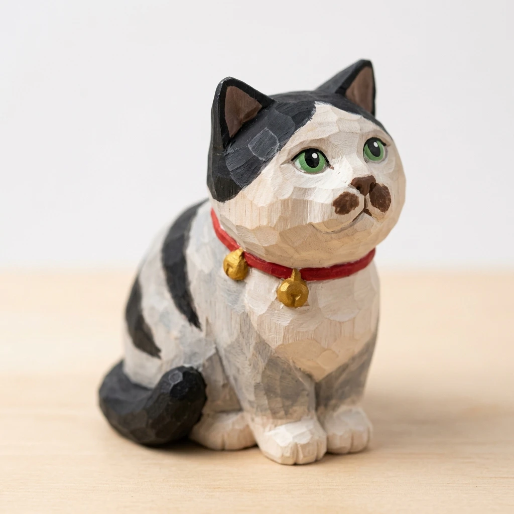 Turn cat photo into a wooden sculpture portrait in one click