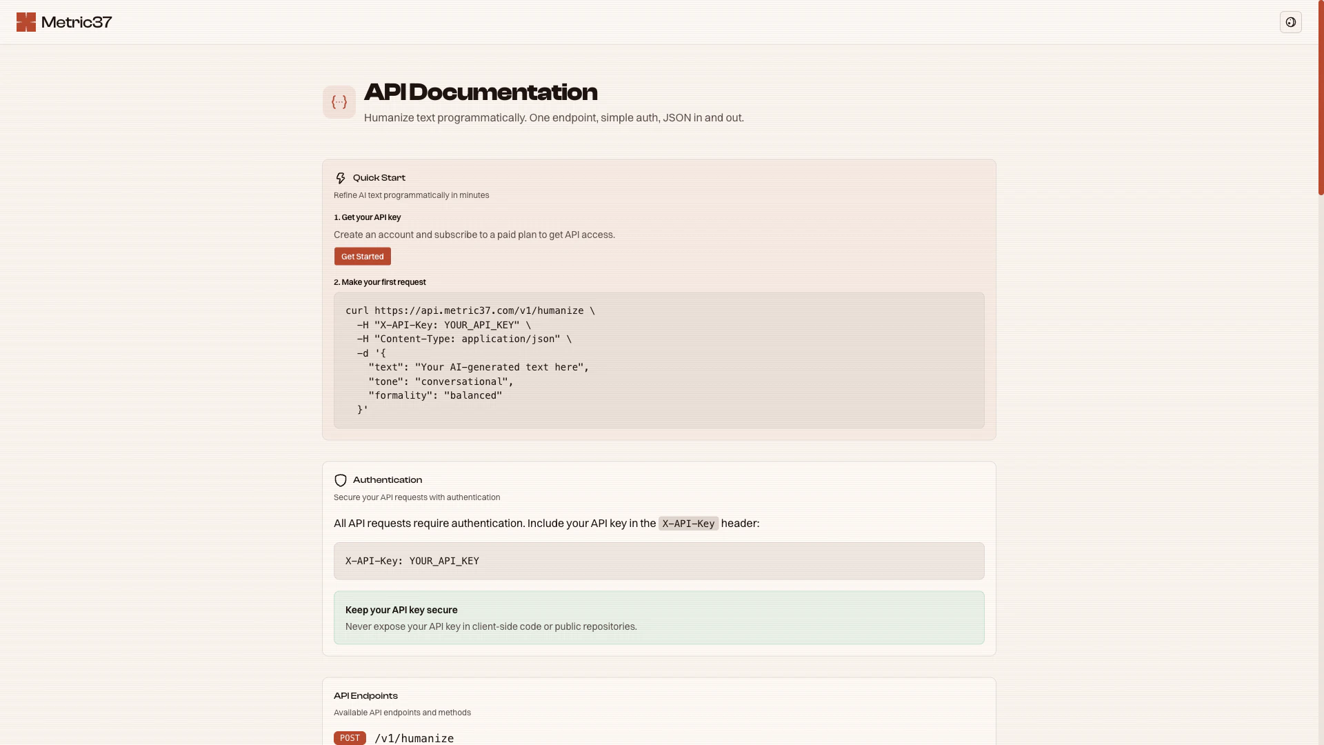 Metric37 rewrites AI-generated text and scores the output for naturalness. If the score is too lo...