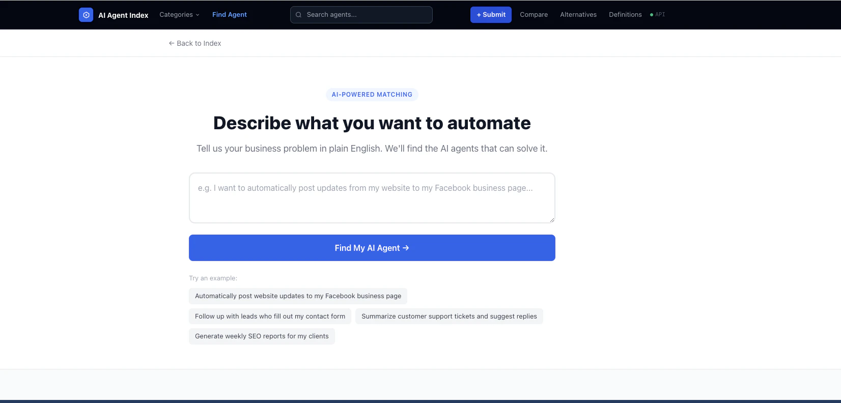 A dataset-first directory of AI agents across 6 business categories — Sales, Support, Research, M...