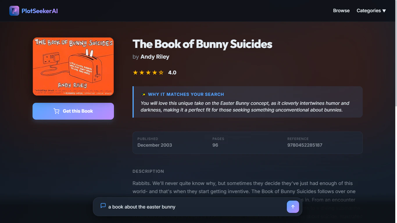 PlotSeekerAI is a revolutionary book engine that understands "vibes." Move beyond basic genre tag...