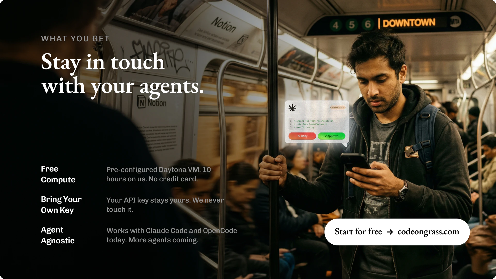 Grass gives your coding agent a dedicated VM that's always ready. No setup, no config, no burning...