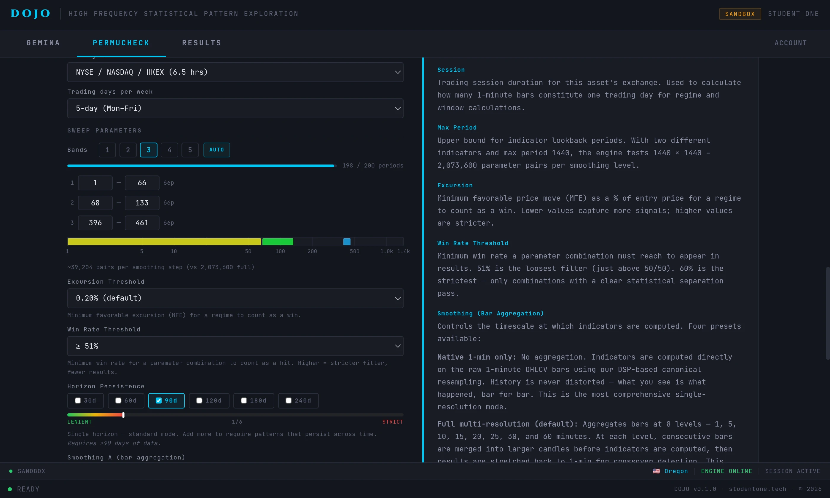 Other platforms find the best configuration. DOJO finds all of them. Every indicator period pair ...