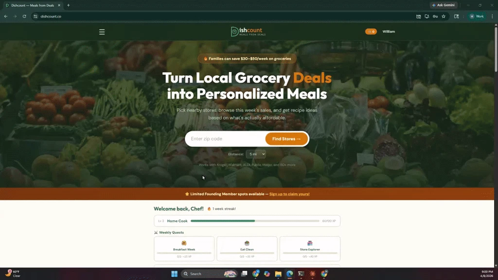 Stop overpaying for groceries. Dishcount pulls weekly sales from 80+ stores like Kroger, ALDI, Wa...