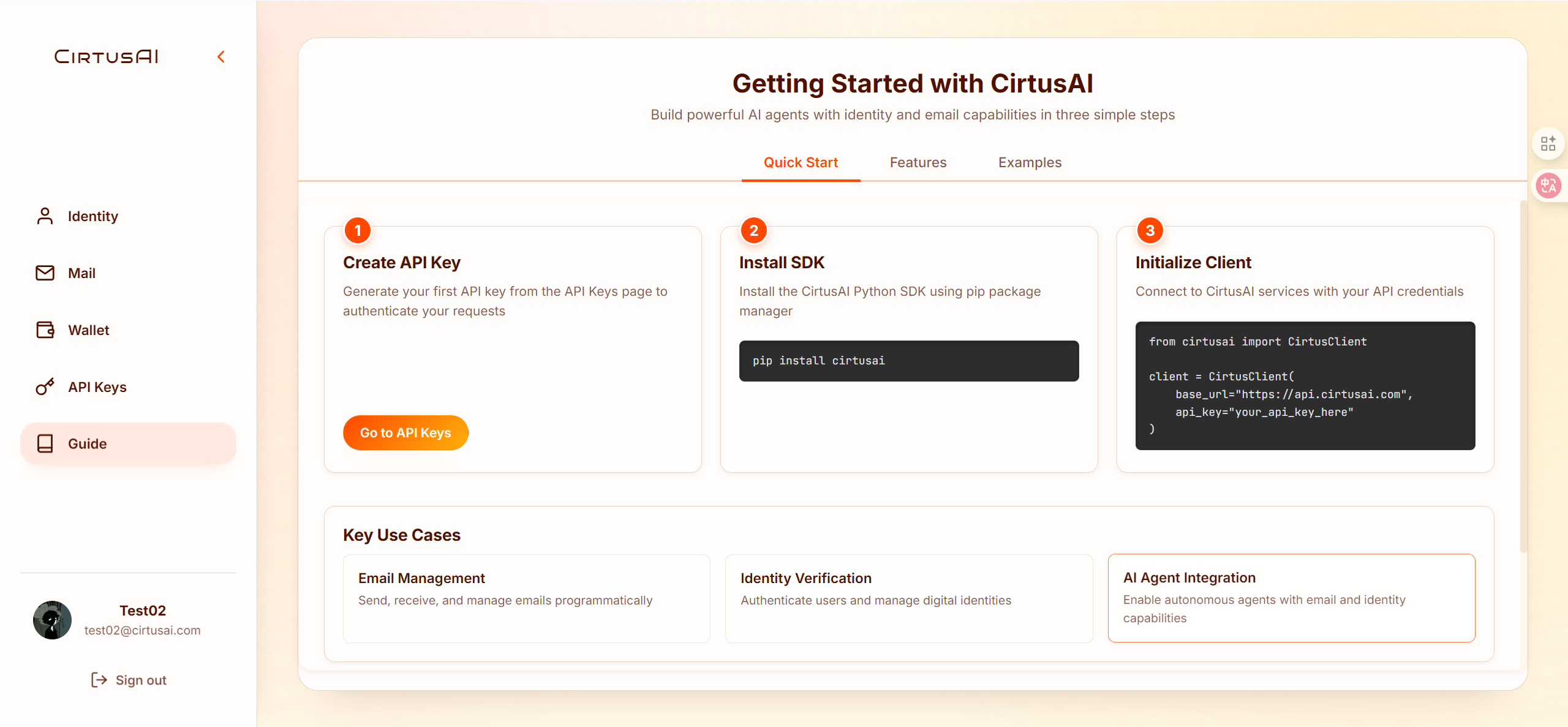 - 専用メールドメイン(@cirtusai.com)でのサインアップ・タスク処理