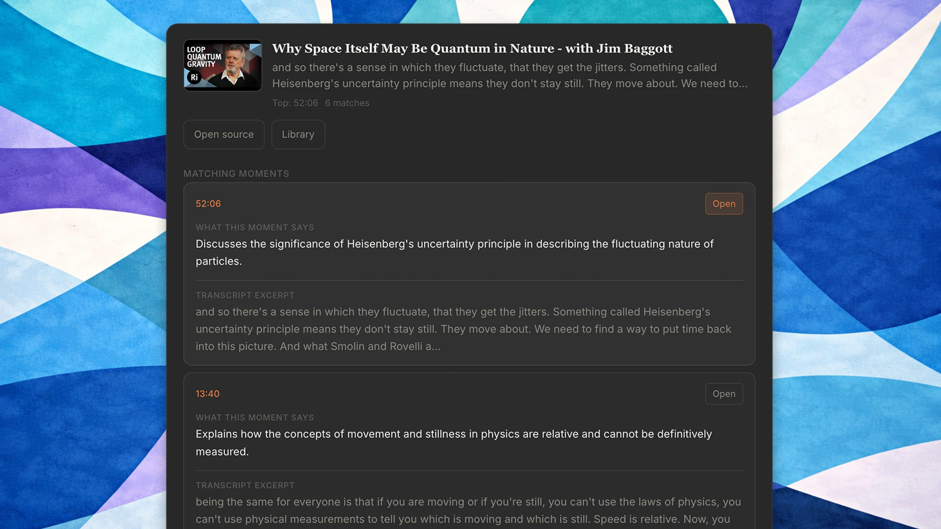 ConceptSeek is a tool for finding specific concepts within YouTube videos, podcasts, lectures, and long-form research documents. It enables users to pinpoint exact passages and moments across a vast array of content from user-specified sources. It allows users to directly navigate to any search result in its original context. The tool supports broader searching beyond specific keyword match, allowing users to find thematic connections and abstract ideas across multiple sources of content.
