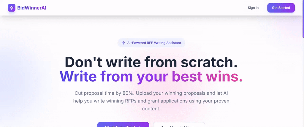 - BidWinnerAI は、AI を使って数分で文脈に合った提案書を作成し、空白ページ・版の混乱・非請求作業のマージン漏れを解消します。