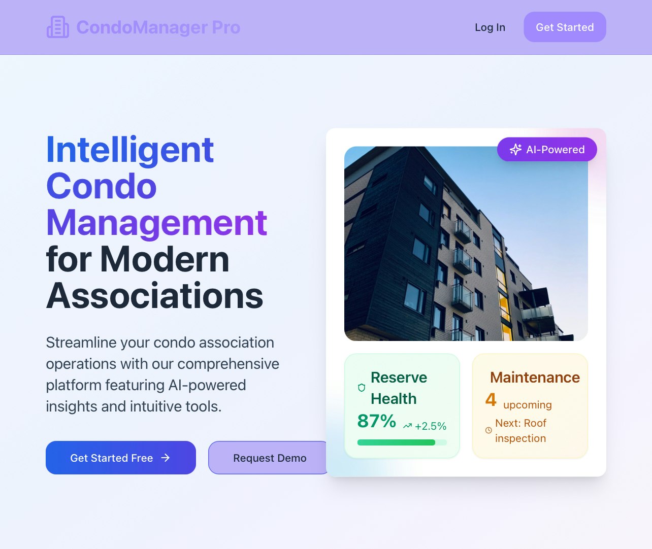 このプロダクトは、コンドミニアム協会の運営を効率化するためのプラットフォームです。AI技術を活用し、さまざまな業務をサポートします。